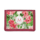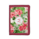 Personalized faux-leather wallet: Classy and fresh seamless pattern composed with red hibiscus flowers and leaves on pale background. Custom Monogram included on white round shape. Matching luggage, luggage tag and more... Do not forget the whole collection of flowers patterns and monogram.