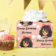 Pink and white polka dot Latina or Hispanic little girl personalized birthday gift wrap.