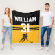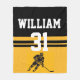 Personalize this cool black and yellow hockey blanket with your player name and number