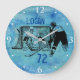 Personalized Hockey Ink Sketch Name Number on blue Large Clock