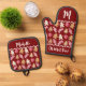 Personalized Holiday Baking Gingerbread Pattern Oven Mitt & Pot Holder Set!
