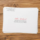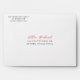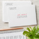 This product is a personalized custom holiday envelope pre-printed with the return address in the top left corner and the recipient's name and address centered in a festive, contrasting red script and black font. It would be searched for using terms like "personalized holiday envelopes," "Christmas mailing," "printed recipient envelopes," "custom holiday stationery," and "holiday envelopes." It fits into the art licensing themes of "Holiday/Seasonal" and "Stationery & Paper Goods," utilizing the classic color palette of red and black/white with a complementary design style to a botanical wreath collection.
