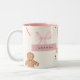 Personalized Holiday Gingerbread & Pink Bow Two-Tone Coffee Mug
