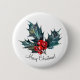 Add a holiday greeting or personalize these classic holly sprig buttons with a personal or business name using the template field. The red and green holly leaves and berries have a vintage style. These pins coordinate with other items in the Watercolor Winter collection from Asterisk Designs.
