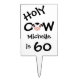 Personalized Humorous Holy Cow Someone is 60 Birthday Cake or Cupcake Tower Pick in black and White.