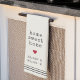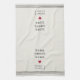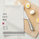 A cute personalized kitchen towel featuring vintage typewriter lettering, rope stripe detailing, and a heart illustration. "Home Sweet Home" or your choice of custom text appears along with your home's latitude and longitude coordinates.