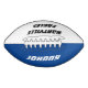 Use our template to customize your own personalized football for your home town team. This one is done in blue and white our hometown team's colors but can be easily changed to your teams colors. Text area's can be customized as well. Set your team up in style this football season.