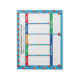 Modern colorful PERSONALIZED HOMEWORK TO DO LIST Tear Away Notepad, showing background pattern of books. Main days are Monday to Friday, with shared Saturday/Sunday and section marked DON'T FORGET. All text is CUSTOMIZABLE including the headings, so you can personalize as you see fit and change the column headings. The main colors are red, green, orange and blue against a CYAN BLUE background. This would make a great gift for Back To School, and can be customized to use as a Personalized Weekly Planner for teachers and family homes. Matching items available. Also comes in yellow, white and pink.