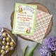 Fun 'HOPPY EASTER' quote text and a cute little bunny on a pastel lime green stripes pattern background. With plenty of room to customize with the family name, party date, address, and RSVP options of your choice.