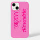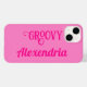 This is a stylish, personalized, design. It is in trending hot pink and retro typography. It has the word "Groovy" and space for you to add your name. It would make an ideal personalized gift or as a stylish, vintage inspired addition to your phone accessories. To personalize, simply add your name in the personalize this text box. Here you can also change the word groovy as well if you want to. To customize, check out the design editing tool. If you need help with personalization, matching products, or for a custom design contact me via zazzle chat or email: ursuladawnmoon@gmail.com