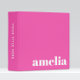 Cute hot pink binder featuring your monogram name or initials in a popular bold white font (you can adjust the size of the font in the design tool for shorter or longer names). Add a title or your full name on the spine in simple white typography.