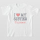 Personalized and cute I love my sister t-shirt for kids. The design features a pink heart and cute blue letters. It's personalized with a custom name printed in pink. Great way for your kid to show love for their sister.