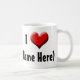 I love (add name here) mug, customize this white coffee mug with anyone's name! A big red heart with some 3d shading and bold black and white text makes a statement of your dedication to boyfriend or partner.