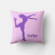 Personalized Ice Skating Throw Pillow in pink and purple.