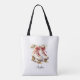 Cute tote bag featuring a pair of ice skates with red bow laces and greenery. Customize with ice skater’s name.
