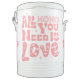 • Customizable with a cheerful "All You Need Is Love" design