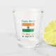 A shot glass featuring the India flag with INDIA below in flag colors and your personalized name above in green. Great for family reunions, parties, and cultural pride. Perfect for India Independence Day and Diwali celebrations and makes a fun stocking stuffer gift.