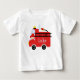 This boy's personalized t-shirt features a cute fire engine and fireman. The design is uses bold colors and the fire engine has been draw to look cute. It's ready to be personalized and could be used as a 1st birthday shirt or for everyday use.