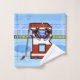 Fun hockey design for the young ice hockey player or hockey fan. Feature the letter A in red and white team colors with co-ordinating hockey stick, helmet , skates and puck. Background features ice hockey rink with customizable scoreboard for your personalized message