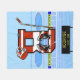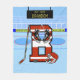 Fun hockey design for the young ice hockey player or hockey fan. Feature the letter B in red and white team colors with co-ordinating hockey stick, helmet , skates and puck. Background features ice hockey rink with customizable scoreboard for your personalized message