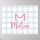 Personalized initial custom name baby blue tartan poster
