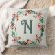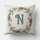 Personalized Initial Festive Wreath Throw Pillow
