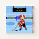 Fun hockey design for the young ice hockey player or hockey fan. Feature the letter A in red and white team colors with co-ordinating hockey stick, helmet , skates and puck. Background features ice hockey rink with customizable scoreboard for your personalized message