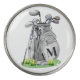 This personalized monogram golf ball marker, divot tool & bottle opener combination features a stylish gray watercolor golf bag filled with clubs, surrounded by a touch of green grass. The design cleverly incorporates a simple serif font initial monogram on the bag, making it look like part of the bag’s design. The monogram is currently in a dark gray, almost black, to match the accents, but you can customize it to your preferred color. This combination tool is both functional and stylish—perfect for fixing divots on the green and marking your ball with a personal touch. A great gift for any golfer, whether man or woman, for Christmas, birthdays, Father’s Day, Mother’s Day, or any special occasion. Personalized Initial Monogram Golf Ball Marker Divot Tool – Gray Watercolor Golf Bag Design.