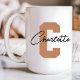 Elegant brown custom name mugs with initials—perfect for Mother’s Day, new moms, birthdays, bridal showers, or as a graduation or anniversary gift for her!