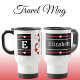 Personalized initial name red black travel mug