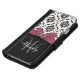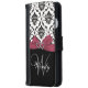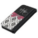 Personalized Initial, Pink, Black Damask Pattern iPhone Wallet Case