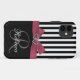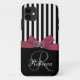 This monogrammed black and white stripes iPhone 5 Case-Mate Case has a photo of this design embedded into the hard plastic cover. The design is made up of a black and white striped pattern, a printed pink bow and ribbon, two hearts with diamonds and a black bottom portion where you can add your name and monogram initial in gorgeous script fonts. This iPhone 5 case cover is the perfect way to accessorize your iPhone 5. Be stylish and girly all at the same time. Design by Elke Clarke©2012. Graphics licensed for use.