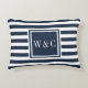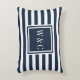 Chic personalized navy blue and white striped accent pillow featuring a navy and white bold square initials monogram. Ideal gift for a wedding or a housewarming gift. You can personalize the initials and customize the color to a color of your choice. Designed by Thisisnotme©