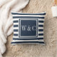 Chic personalized navy blue and white striped throw pillow featuring a navy and white bold square initials monogram. Ideal gift for a wedding or a housewarming gift. You can personalize the initials and customize the colour to a colour of your choice. Designed by Thisisnotme©