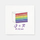 Featuring an original slice of rainbow layer cake topped with white frosting. Simply personalize with your initials and date information.