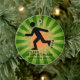 Inline Skating Rollerblading Personalized Ornament Christmas 20XX. A skater in motion against a green starburst background. All customizable text, front and back!