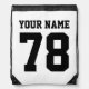 Personalized jersey number drawstring backpack. Cool sports / gym bag for men women and kids. Make one for yourself or team. Add your name. Perfect for basketball, baseball, football, soccer, volleyball, softball, lacross and more athletic games.
