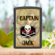 Avast,ye lubbers! Shiver me timbers! A dashing jolly roger with a cutlass in his teeth. Savvy? Travel in swashbuckling style. Personalize with your name or give as a gift.
