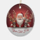 Personalized Jolly Santa Claus & Reindeer Trio Ceramic Ornament