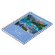 Dimensions: 6.5" x 8.75" . I really needed it larger at 7.25" x 9.75". It will be used by a Teen Youth Group Bible Study so not sure how the spiral front cover will hold up. Front cover is creasing in the bottom hole. I love the pretty design and how easy it was to personalize! Excellent semi gloss clear pictures.