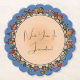 Personalize the greeting on these gorgeous Judaica themed premium paper coasters featuring a colorful original painting of the city of Jerusalem, surrounded by desert sands, against a blue sky. Text defaults to "Next Year in Jerusalem" - else change it or clear it altogether.