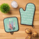 Personalized July Birth Flower Custom Name Oven Mitt & Pot Holder Set