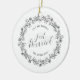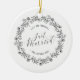 Lightweight, smooth, pure white ornament with nice sheen. Perfect size to be seen from across the room ... and to attract closer inspection! Price was great for ordering enough for the whole family! Clear, bold black design just as requested. Matches the order exactly. Just so nice!