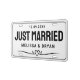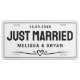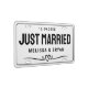 Celebrate your big day with this Just Married Personalized Wedding License Plate. Designed in a classic black and white license plate style, this custom sign features your wedding date and couple’s names, creating a timeless keepsake for your getaway car or home décor. Perfect for newlyweds, wedding photos, or as a memorable wedding gift, this decorative license plate adds a charming finishing touch to your celebration.