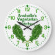 This personalized vegetable kitchen clock is perfect for kale lovers. The design has two green kale leaves on the bottom. It says Anabelle's Vegetarian Kitchen in green on the top.