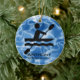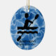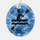 Kayaking Personalized Ornament Christmas 20XX. A kayaker in motion against a wavy, blue water background. All text customizable, front and back!