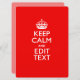 A personalized racy red Keep Calm and Carry On style saying on a custom gift. Humorous or whimsical try on your creative words on the two editable lines of text. Remember to use CAPITAL letters for best results.