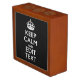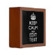 A Keep Calm and Carry On style saying on a custom desk top gift.