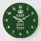 Personalized Keep Calm And Have Your Text on Green Large Clock