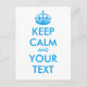 Personalized KEEP CALM and YOUR TEXT - blue words Postcard